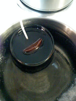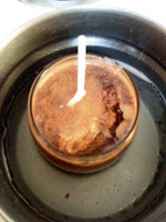 The theory is that that by heating the wax up, in the container, the slow and gentle cool down would keep the cracking to a minimum and save the candle. The photo below is the candle in a gentle warm water bath.