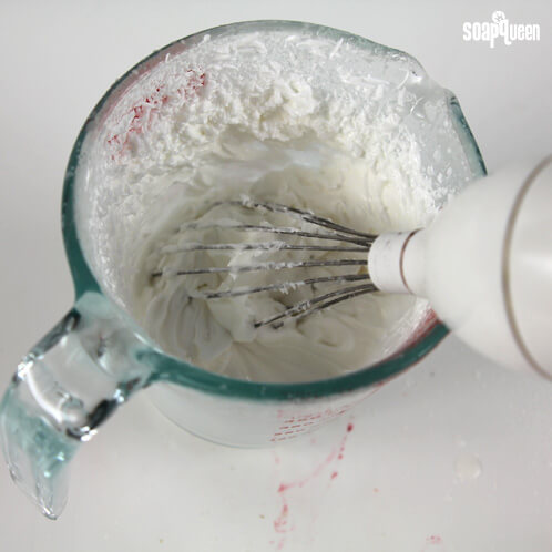 SIX: Using a hand-held mixer, whip the melted wax until it is thick enough to form slight peaks when manipulated with a spoon.
