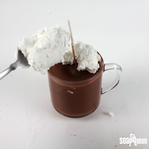 SEVEN: Moving quickly, spoon the whipped wax on top of the cooled candle. Allow the whipped wax to fully harden