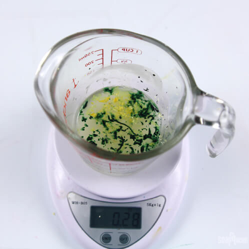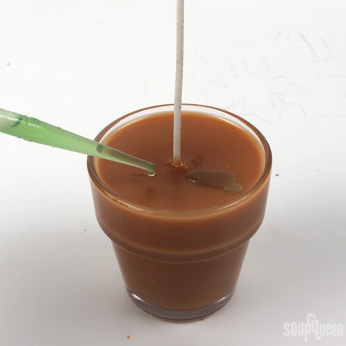 TWO: Pour 4 oz. (volume measurement) of melted wax into smaller container.