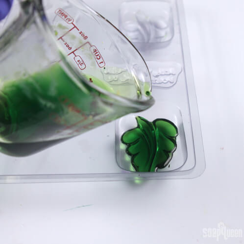 FOUR: Once you are happy with the green, use your dropper to fill just the leaf section of the Guest Botanicals mold. Don’t fill this too full! You want just the leaf itself, not the rectangle part of the mold.