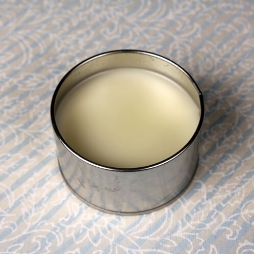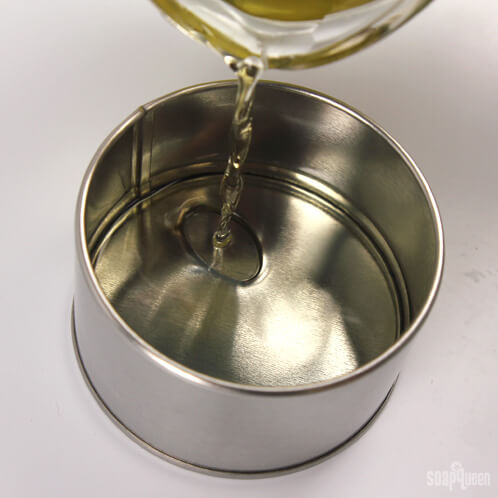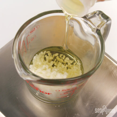 ONE: In a small heat-safe container, combine the olive oil and white beeswax. Be sure to use a small container that is proportional to the amount of liquid and wax. If there is too much extra room, the container can explode in the microwave.