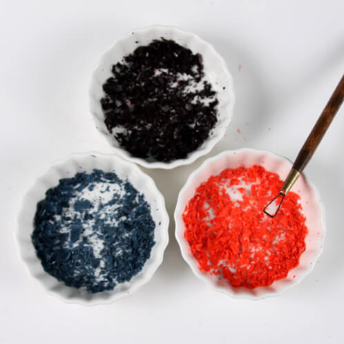 ONE: Start by using a clean up tool to shave off chunks of the dye blocks. The amount of color you want is up to you. Shave off more for a darker color and less for a more pale color. Set the colors aside.