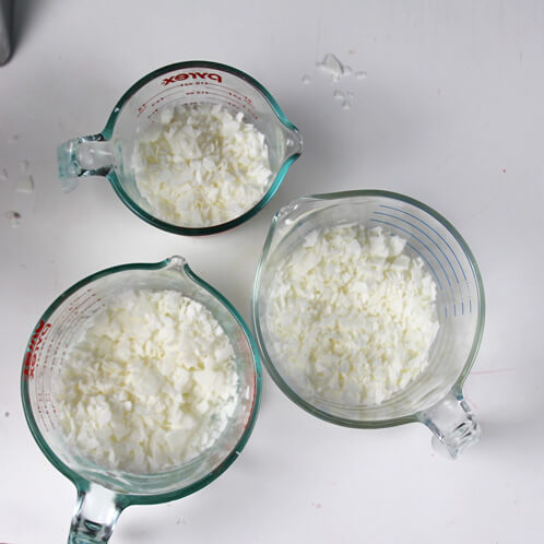 TWO: Measure out 15.6 oz. of soy wax. This will be enough to fill all three molds.