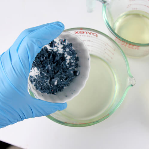 THREE: After measuring wax into the large container, split the wax into three containers each measuring 5.2 oz. At this point, melt your wax by putting the containers in the microwave for 1 minute intervals. After each 1 minute burst, check on the wax and stir with a spoon until it is fully melted. Wax has a higher melting point than melt & pour soap, so it may take slightly longer to fully melt.