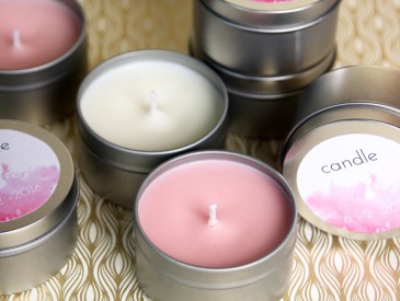 Candles are a great favor option. They are relatively quick and easy to make, and who doesn’t love a candle? For this tutorial, I made five candles featuring two different color and scent combinations. One candle is scented with Sweet Pea Fragrance Oil and colored a light pink for a feminine option. The other is uncolored and scented with Tobacco and Bay Leaf Fragrance Oil.
