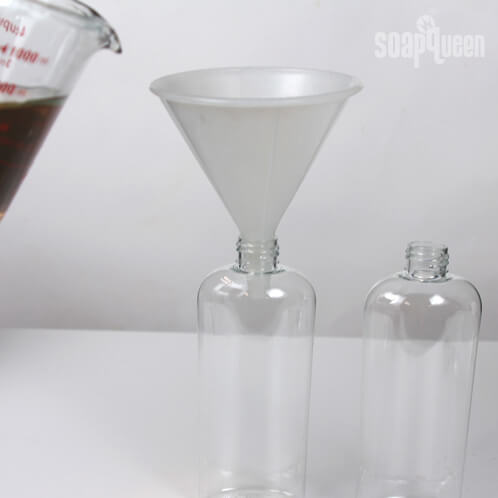 FIVE:Â Using a funnel, pour the mixture into the 8 oz bottles.
