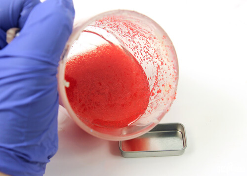 FOUR: Pour the lip scrub into the slidey tins.