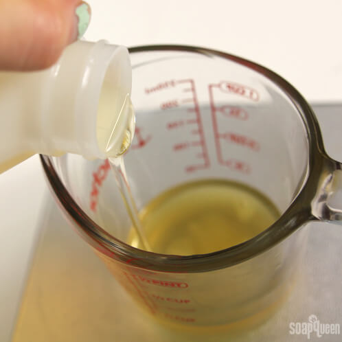 TWO: Once melted, add .4 oz. Castor Oil and stir.