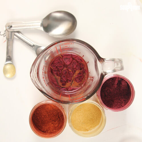 THREE: Add 2 scoops Sparkle Gold Mica, 2 scoops Merlot Mica and 2 scoops Copper Sparkle Mica. Stir.