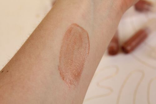 Below is an example of what the color looks like on skin. It is a great sheer, neutral hue that works for a wide variety of skin tones!