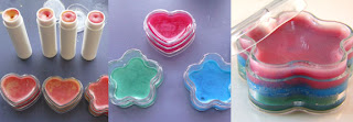Optional Steps:Layers! Prepare each lip balm color separately. We used Cellini Red, Apricot Blush, Cellini Blue and Shamrock green.Once the colors are prepared and flavored, use a dropper and pour layers.