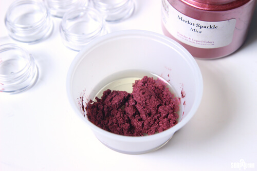 - In a small, separate container, combine the argan oil and Merlot Sparkle Mica. Stir to combine.