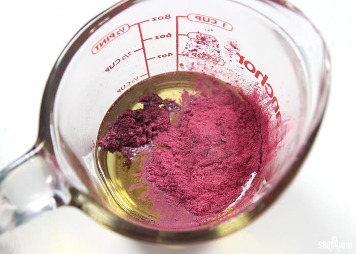 - Add the Merlot Sparkle Mica and Rose Pearl Mica and use a spoon to fully incorporate.