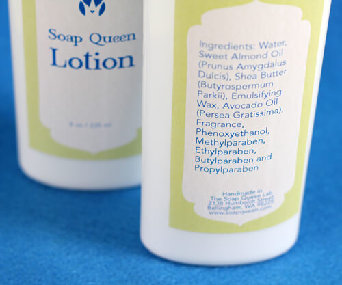 First thing to know – and this may seem obvious – is that the most dominant part of the label should be what the product is. This should be on the front of the product. So ‘Soap Queen Lotion’ should be written with the largest size font. Also, be sure that it is clear what the product is. For instance, if you want to call your lotion ‘cream’ or ‘body butter’ that is acceptable, but something confusing like ‘Soap Queen Gunkity Gunk’ would not be acceptable.
