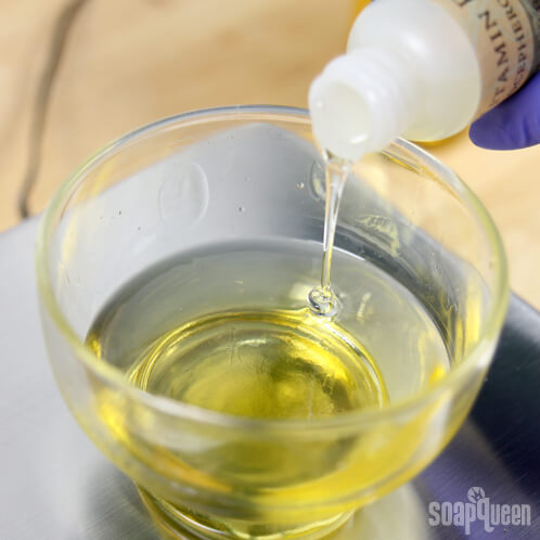FOUR: Add the Vitamin E. Vitamin E oil is very thick, so you may prefer to pour it directly into the mixture as opposed to using a dropper to add it.