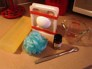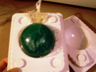 2. Shoot! That pouf is not easy to get in the mold! But I finally did and got the soap poured. I’m excited and can’t wait to see how mine turns out. I used an orange pouf and a Ginger Peach fragrance. Yippee! Thanks Anne-Marie!!!