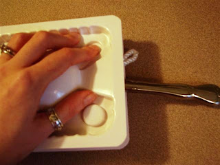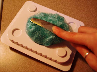 d. Leaving the butter knife there to hold the loofah in place, assemble your mold.
