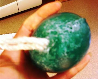 2. Get your loofah and place into the mold (if your loofah is large this may be tricky, here is what we did to get ours to fit)
