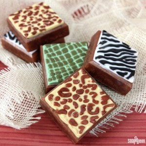 These Animal Print Melt and Pour Bars feature zebra, leopard and alligator print designs.