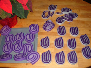 Aren’t they cute? They’re using Kumquat fragrance, non-bleeding purple and either Super Pearly White (soaps on right) or Sparkle Violet (soaps on left) for the contrasting color.