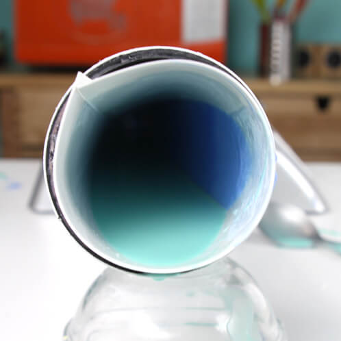 SIX: Once your soap has cooled, gently pour it into the mold. As it pools in the back, slowly lower the mold as you pour until it is resting on your bowl (or whatever you choose to use). The soap may not come all the way up to mouth of the mold, but that’s okay! The other colors will fill in the space, and you can always cut off the end of the soap when you unmold it.