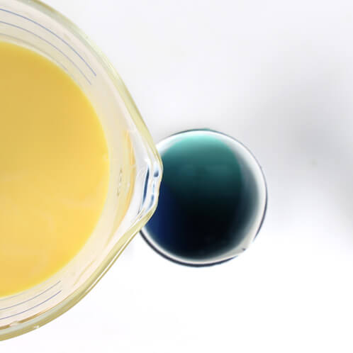 TWO: Now shave off portions of the colors blocks and add one color per container. Color blocks are WYSIWYGs (what you see is what you get), so add more color block for a darker color and less color block for a more pastel color. In order to keep crisp lines in the soap, make sure whatever colors you choose to use are non bleeding. Want a list of our colors that are non-bleeding? Here’s a blog post on just that.