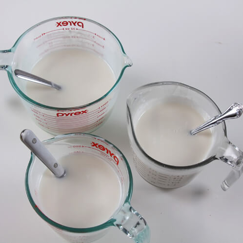 ONE: Begin by cutting the White Melt & Pour Base into small chunks and measure out about 16 oz. each into three separate containers. Be sure the containers are microwave safe! Melt the containers one by one in the microwave in short, 30 second bursts.