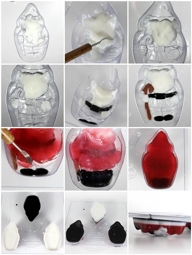 EIGHT:Â We have two more layers of soap to go and you get to choose whether you do the white or black next. I tried both and liked the white followed by black. The white brings out the Santa red! Then black ties it all together so you’re not seeing too much white.