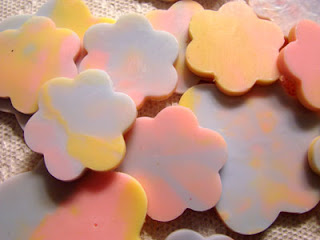 Pour thinly enough to ensure you can easily push through the soap. These soaps end up unique and different. Each flower has a varied color pattern and look.