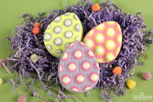 The Easter Bunny visited the Soap Queen blog early this year, and he brought these adorable melt & pour massage eggs with him! This is beginner-level melt & pour project is great for kids, and it features two eggscellent springtime fragrances — Eden’s Garden and Sweet Pea.
