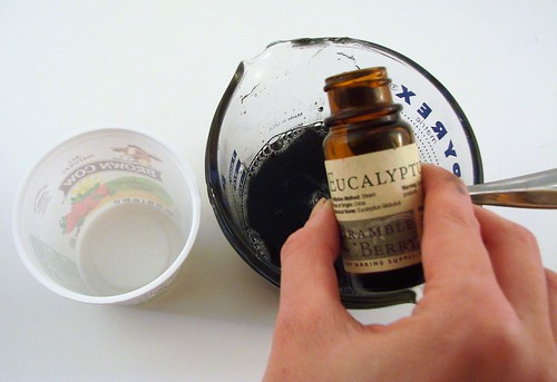 1 ounce essential oil (we used lavender, orange and eucalyptus)