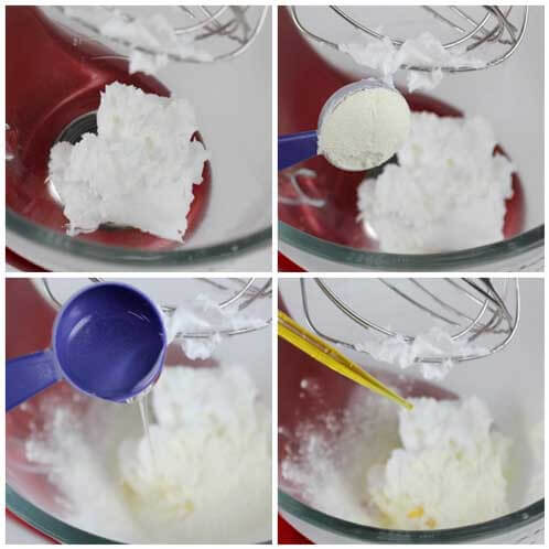 We actually used the Clementine Cupcake Fragrance Oil for this particular frosting and didn’t use the Vanilla Color Stabilizer, so it did change colors after a few days. But, you can still add 6 ml of fragrance oil to 6 ml of Vanilla Color Stabilizer. I would do a small test batch, and if you find the frosting to be too runny, you can always add a bit more meringue powder to help it harden back up!