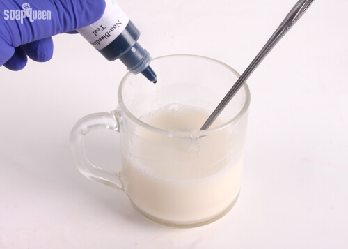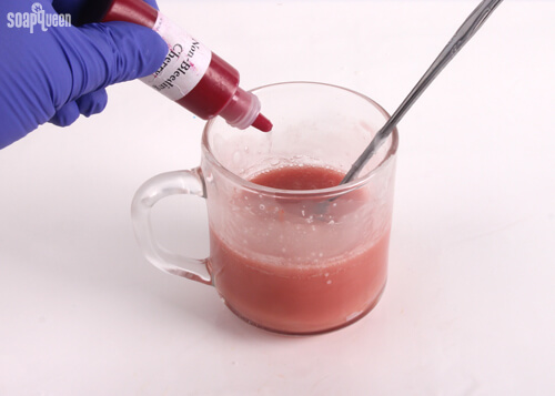- To container A, add half of the dispersed Neon Blue Raspberry and 1 drop of Liquid Blue. Stir thoroughly and set aside.