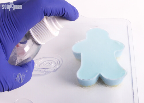 - Spray each cavity with 99% isopropyl or rubbing alcohol to disperse any bubbles. Allow to fully cool and harden. Once hardened, remove soap from the mold, reheat the leftover soap to create one more gingerbread man. Allow to cool and fully harden, and enjoy!