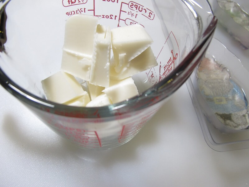 Let the littles guys harden up a bit and it’s time to do the white layer.  Melt 6-7 oz of White Melt & Pour soap base.