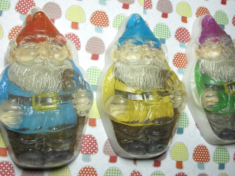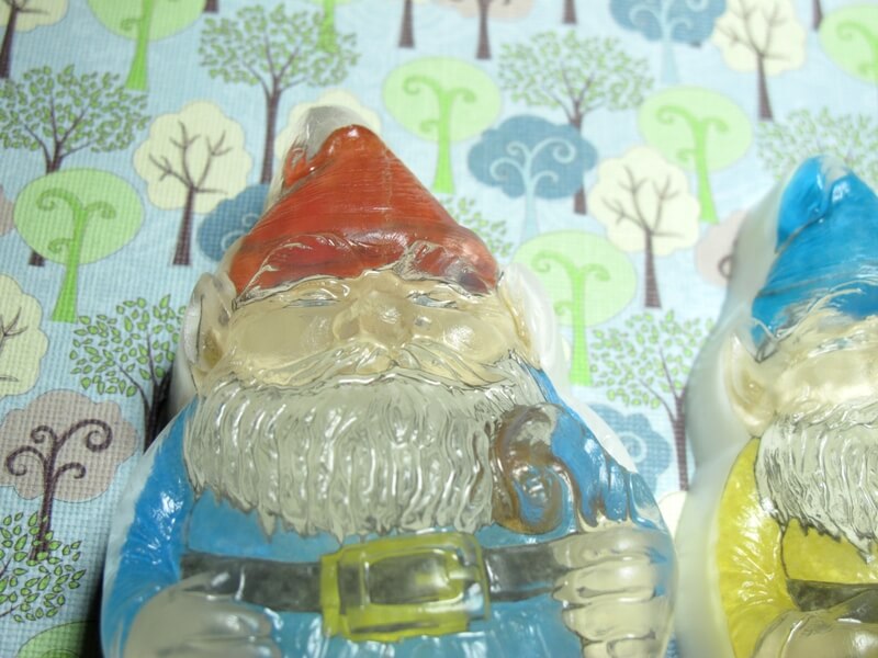 Once I saw the Gnome Mold at Bramble Berry I knew I had to have it.  Gnomes are in right now.  You see them popping up on Etsy and if you have kids you might have seen the movie Gnomeo and Juliet.  I wanted to give the gnomes detail and color so I thought Water Soluble Paper would be the perfect way to do that.