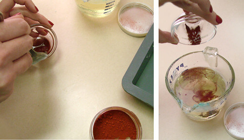 I have a question: In the photo on the right under Step One, it looks like you’re spritzing the soap with rubbing alcohol. Does that help the mica mix better? I ask because I seem to have some difficulty making the micas integrate evenly in the mp soap.