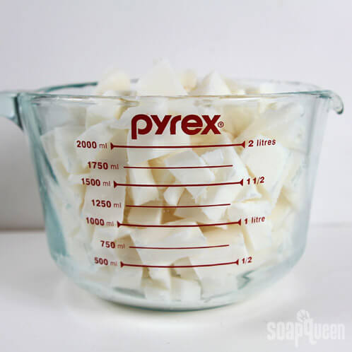 ONE: Cut the Shea Melt & Pour into 1 inch cubes and place in a heat safe container. Melt in the microwave on 30 second bursts, stirring between each heat.