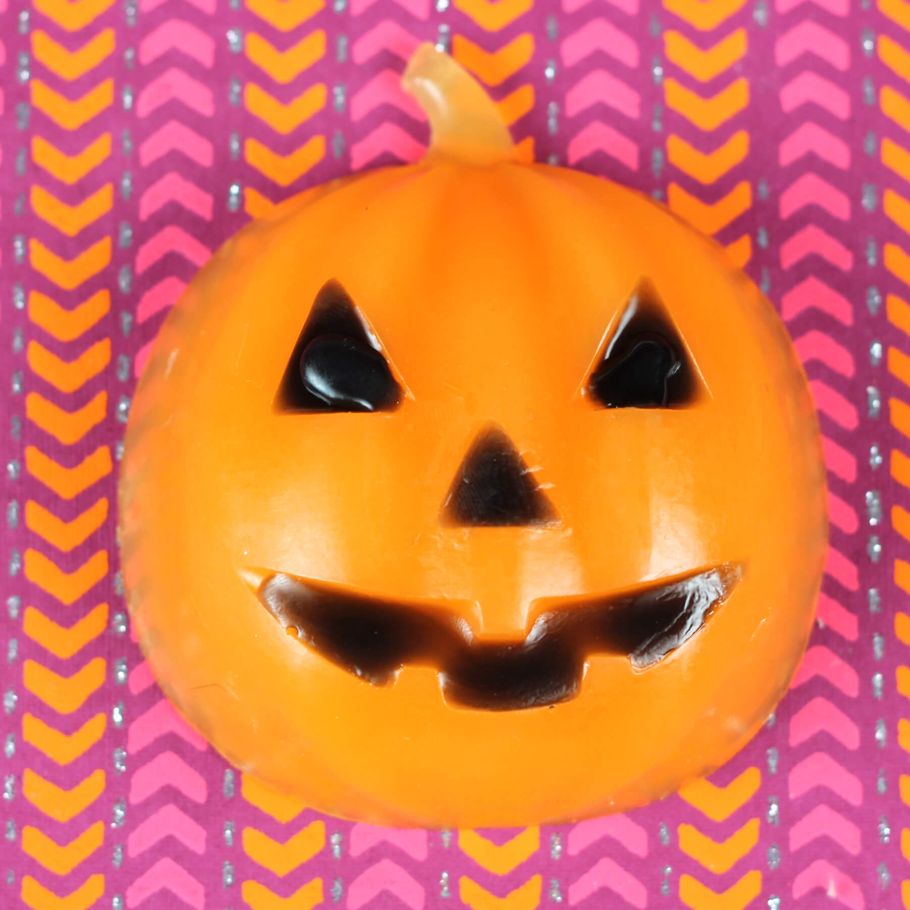 NOTE: the Halloween Pumpkin Mold has been discontinued. It has been replaced with the 12 Bar Round Silicone Mold. There are two methods to create a pumpkin design without a pumpkin mold. One method is to paint on a pumpkin design with black melt and pour soap. The other method is to carve eyes, a nose, and a mouth into the soap then follow the recipe to inject black soap into the cavities.