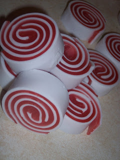 Learn how to make your own Jelly Roll Soap here. While you’re learning to that, I’m making chocolate … from scratch! It’s Amber’s 2 year anniversary with Bramble Berry and she loves chocolate. So, I’m making chocolate and, if all goes well, the outcome will produce Peanut Butter Cups, Marshmallow Cups and maybe toss in a few candied spicy dried fruit chocolate just for fun. The chocolate is tempering right now. Here’s to hoping it all turns out … or else Amber will be stuck with a store bought cake tomorrow! Then again, given the um, newness of this chocolate making venture, perhaps she would prefer the store bought product.