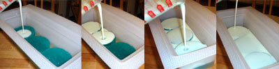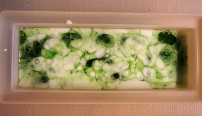 Step 5: Allow a thick skin to form. Pour a layer of white soap to really make the shamrocks pop.