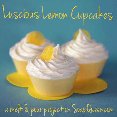 Celebrate the sunshine with these cute lemon cupcake soaps. These soaps feature Lemon Cake Fragrance Oil, on sale for the month of March. It smells wonderful in cold process and melt & pour soap. It will discolor to dark brown in cold process and tan in melt and pour. This recipe uses Vanilla Color Stabilizer in this recipe to keep the cakes yellow (as opposed to brown), but be aware that the stabilizer does not work as reliably in cold process soap.