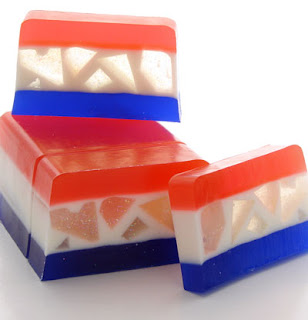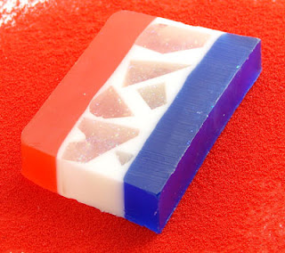 Wait for the entire soap to harden fully. Cut with a sharp knife or a crinkle cutter. Oooh, ahhh and celebrate President’s Day with your patriotic soap.