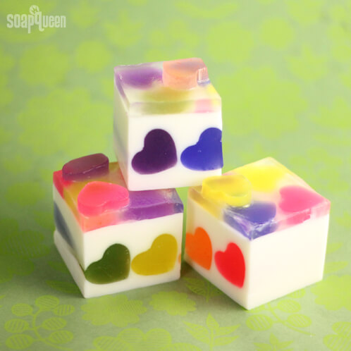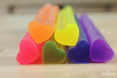 Valentine’s Day may be over, but there is no reason to abandon heart-themed projects quite yet. This tutorial features the watertight Mini Heart Silicone Column Mold, which works wonderfully for both melt & pour and cold process projects. Spread the love with this fun project!
