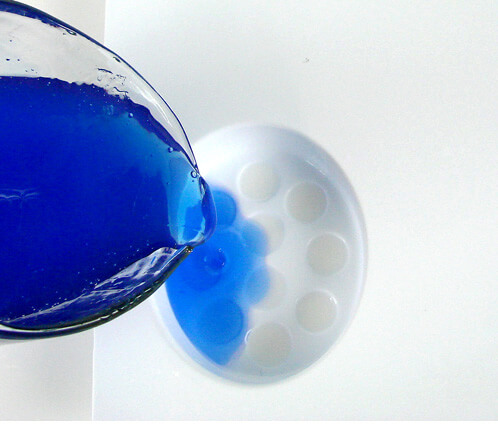 ONE: Melt 1 ounce of white melt and pour in the microwave and use a dropper to fill in the dots. Let cool for about 5 minutes.