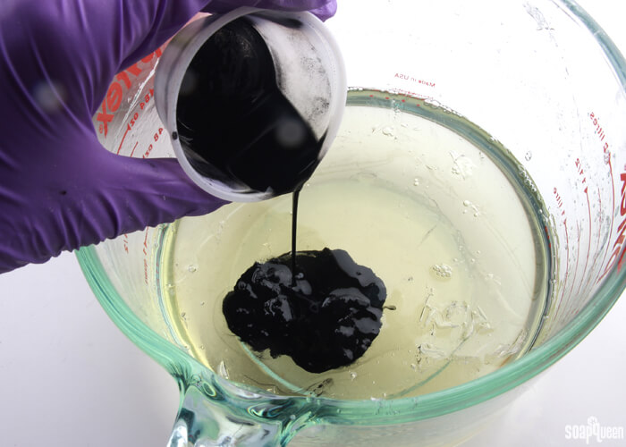 • Disperse 2 teaspoons of activated charcoal into 2 Tablespoons of isopropyl alcohol. Add all the dispersed activated charcoal to the remaining clear soap and use a spoon or spatula to fully mix in.