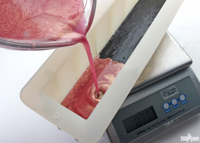 In that case, I would recommend coloring 16 ounces of soap pink and 16 ounces black. You can do around 8 ounces for each pink layer, and all the black for the middle layer. That will leave you with a bit of extra soap. That allows for a little wiggle room as far as the layers go. You can pour any leftovers in another mold. 🙂