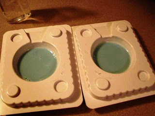 - Pour a small amount of the soap base into each side of the mold and spray with alcohol.
