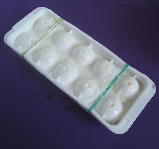 Step Three (crossing T’s and dotting the Eye’s): Now it’s time to add your fragrance of choice and pour the last layer. Spray your soap with rubbing alcohol and put the top half of the mold back on and secure it rightly with a rubber band on each end. Melt about 3-4 ounces of white soap base and add your fragrance oil. Pour the soap through the tiny holes in the mold or use a syringe if necessary (we used the syringe from PJ’s Soap Kit). If the holes are too small for your liking, you can drill them out with a drill to widen them.Tip: We recommend using a non-discoloring fragrance (we chose Pearberry) but you can always use vanilla color stabilizer if you want to use a vanilla type fragrance. See Soap Queen TV on how to use Vanilla Color Stabilizer.Check out other Soaplove projects hereor shop Soapylove’s Ezines here.